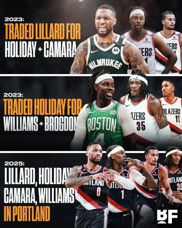 开拓者曾先后送走利拉德和霍乐迪 现今二人波特兰联手 admin 2025-07-18 09:30:09 nba 北京时间2025年7月18日,据Shams透露,达米恩-利拉德与开拓者签下一份3年4200万美元的合同,重返波特兰。2023年夏天,开拓者将利拉德送至雄鹿,换回了朱-霍乐迪和卡马拉;同样是那年夏天,开拓者又将利拉德送至凯尔特人,换回了罗伯特-威廉姆斯+布罗格登。今年夏天,开拓者用小西蒙斯从凯尔特人换回了霍乐迪。而现如今,利拉德、霍乐迪、卡马拉、罗威均在波特兰……(搜狐体育编辑:JS) #Shams#夏天#西蒙斯#卡马拉#拉德#开拓者#布罗格登#霍乐迪#罗伯特#达米恩#消息资讯#凯尔特人#利拉德#波特兰 0 86 # 上一篇:曝勇士等四队探索交易詹姆斯 经纪公司:不属实 # 下一篇:杨瀚森:队友弥补了我的不足 希望利拉德早日回归 相关文章 亚历山大空砍39分 阿德巴约30+12热火胜雷霆 【搜狐体育战报】北京时间1月18日NBA常规赛,主场作战的热火以122-120击败雷霆。阿德巴约30分12篮板4助攻,霍姆格伦14分11篮板2助... 西蒙斯39分布朗27+7 凯尔特人逆转热火 【搜狐体育战报】北京时间1月16日NBA常规赛,客场作战的凯尔特人以119-114击败热火。西蒙斯39分4篮板4助攻,鲍威尔26分3篮板2助攻。... 浓眉很可能接受手术 独行侠正和多队重启交易谈判 北京时间1月14日消息,来自名记Shams的报道称,消息灵通人士透露,独行侠队球星安东尼-戴维斯很可能接受手术修复左手韧带损伤,预计他将缺阵数月... 马克西38+4+5博伊尔斯17+15 猛龙加时胜76人 【搜狐体育战报】北京时间1月12日NBA常规赛,主场作战的猛龙以116-115加时击败76人。博伊尔斯17分15篮板3助攻,马克西38分4篮板5... 赛后试图殴打东契奇!NBA官方:施罗德被禁赛三场 北京时间1月11日,NBA官方宣布,对国王球员施罗德实行停薪禁赛三场的处罚。在北京时间12月29日国王不敌湖人的比赛中,施罗德与东契奇爆发口角。...